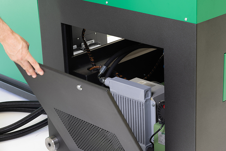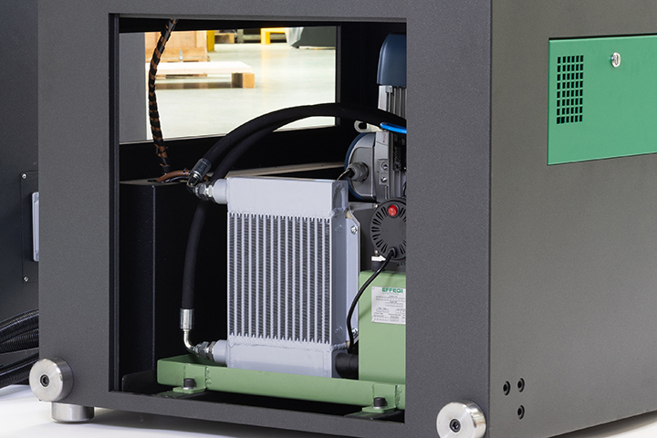 Hydraulic unit, mounted on a slide tray with rear insertion complete with tank-pump-air/oil heat exchanger, control servovalve, air compressor