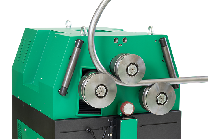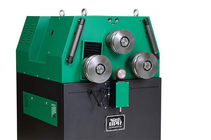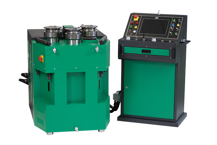 Computerized numerical control (CNC) bending machine operating in manual and automatic cycle, with direct insertion of the radius and bending data, to obtain many different shapes and developments