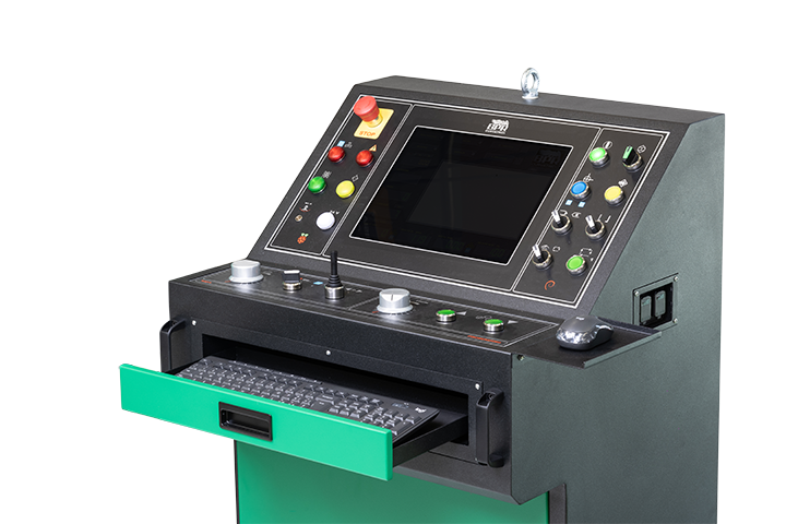 LCD-VGA-HDMI-15 “color active matrix monitor, for the interface with the operator, both assembled on an independent console. Side ports for female USB and LAN RJ45 connections. Retractable control keyboard and control mouse