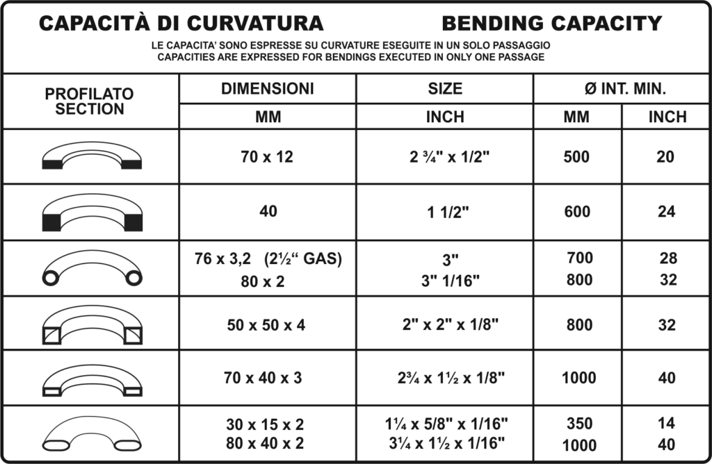 CAPACITY BASED UPON MILD STEELS MAX. TENSILE