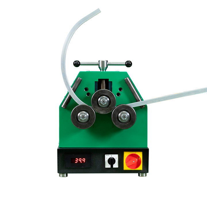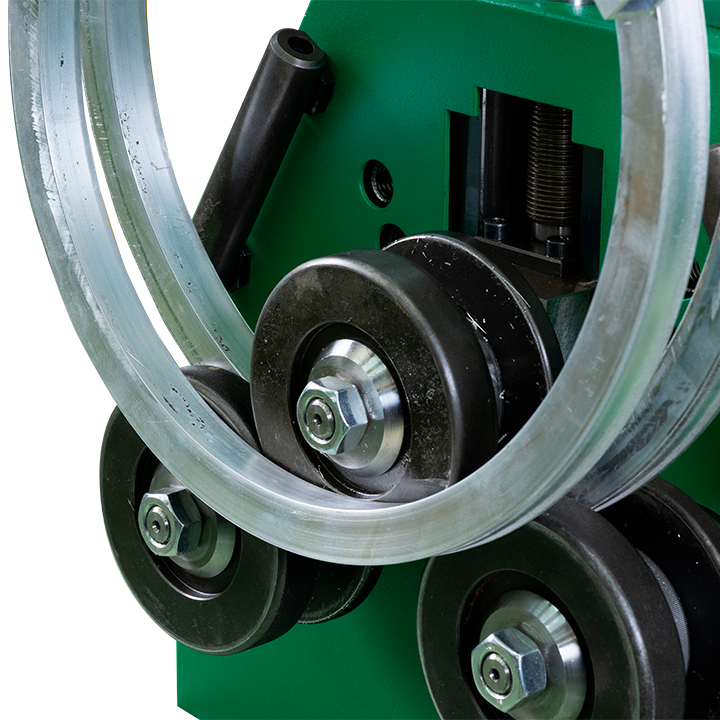 Two driven rolls knurled, for optimal traction